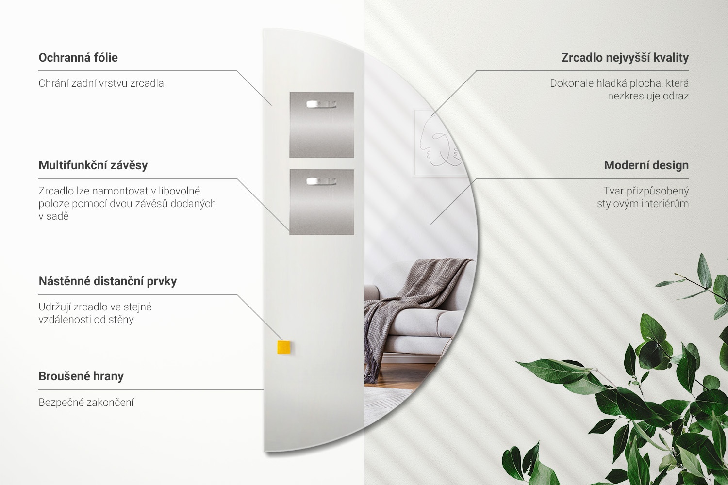 Zadní strana zrcadla (ochranná fólie) se může barevně lišit od vyobrazení v nabídce. Nemá to vliv na kvalitu produktu a není to důvodem k reklamaci.